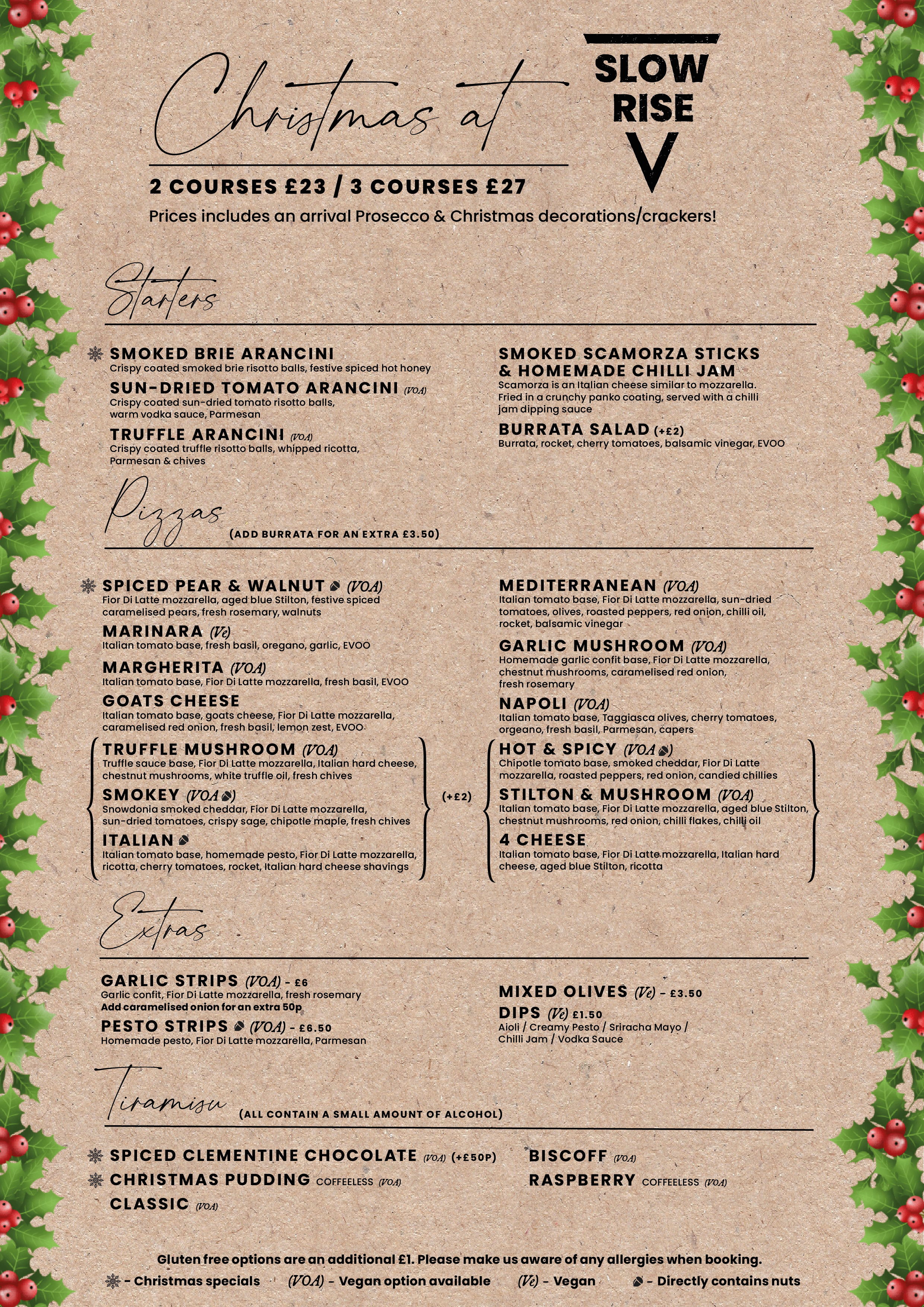 To make a Christmas booking enquiry, please email us at slowrisechristmas@gmail.com.